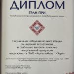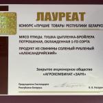 Дажынки-2011 "Почетным дипломом победитель республиканского соревнования на уборке урожая зерновых и зернобобовых культур среди птицефабрик" |